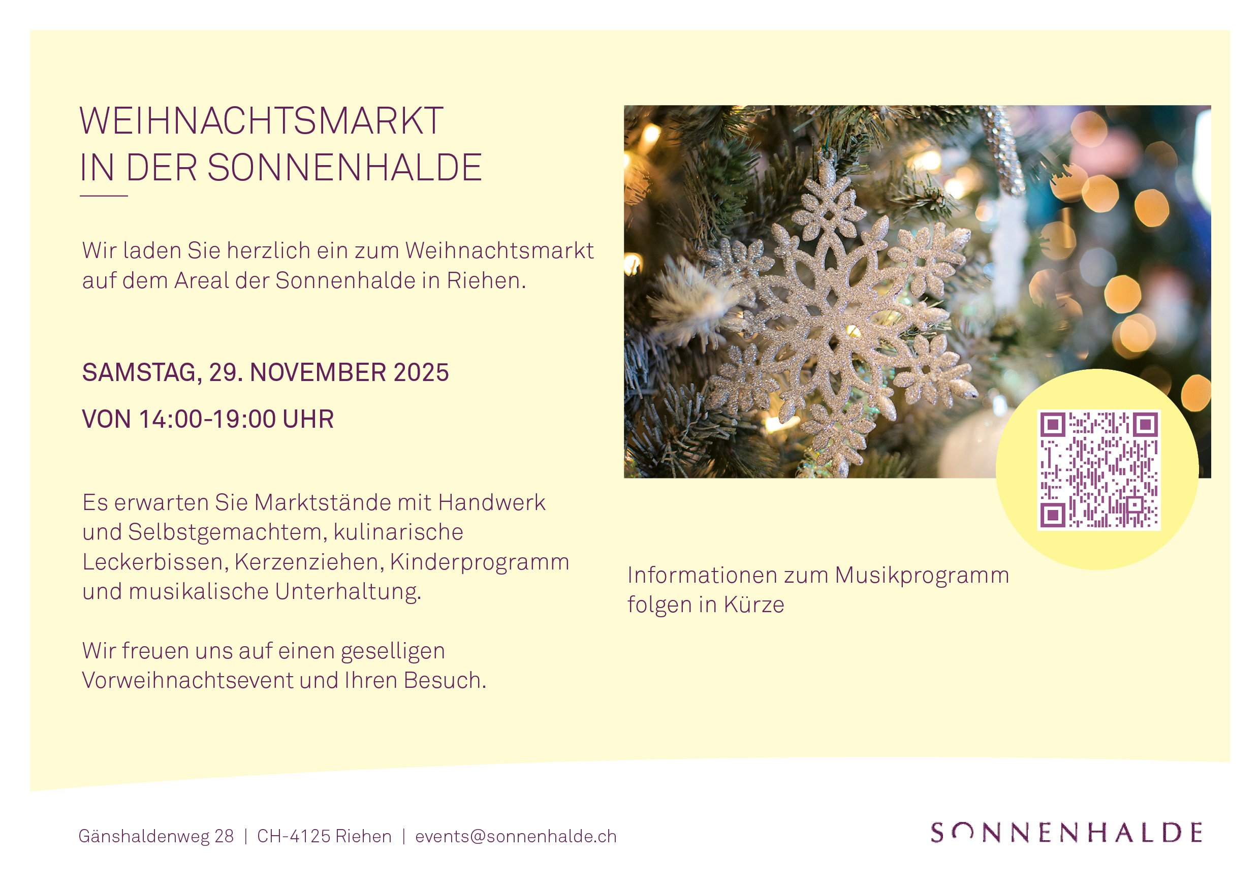 Bereits zum fünften Mal findet auf dem Sonnenhalde Areal unser traditioneller Weihnachtsmarkt statt - passend zu unserem diesjährigen 125-jährigen Jubiläum.